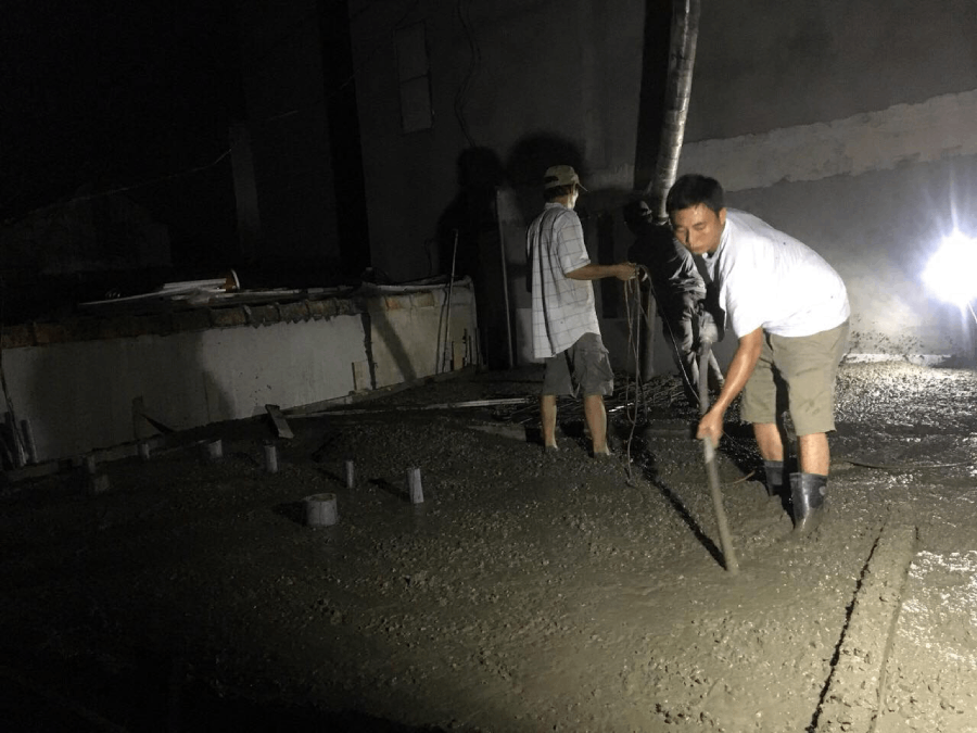 - Đổ bê tông lót móng